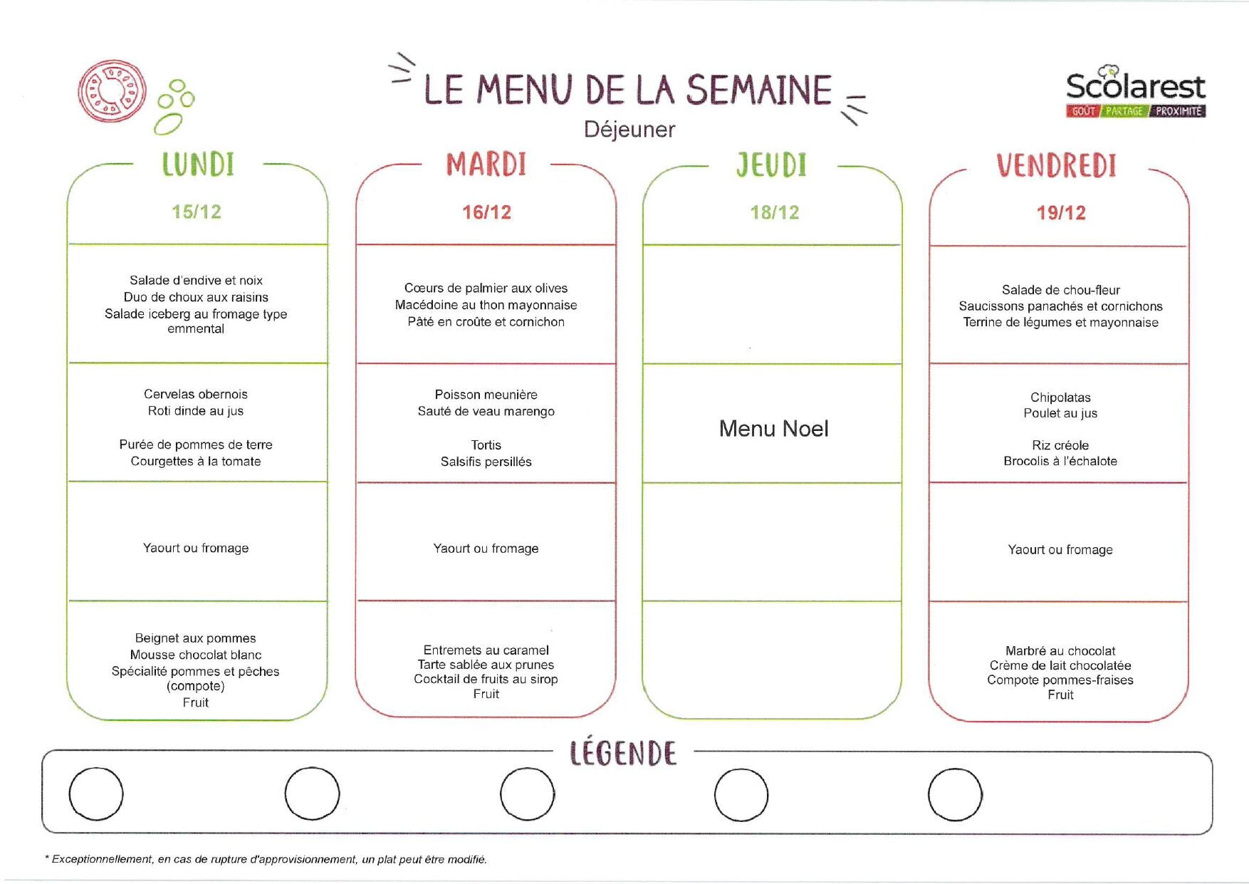 Menus semaine